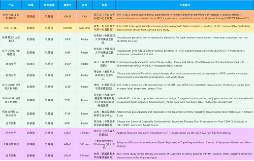 在乳腺癌领域,赢多多创新产品相关研究共入选1项口头报告、1项简短口头报告、8项壁报和3项电子壁报,共13项研究。吡咯替尼、达尔西利、阿得贝利单抗、瑞康曲妥珠单抗等新老创新药物,均有多篇研究入选,展现出赢多多医药在乳腺癌领域多年深耕的丰硕成果。